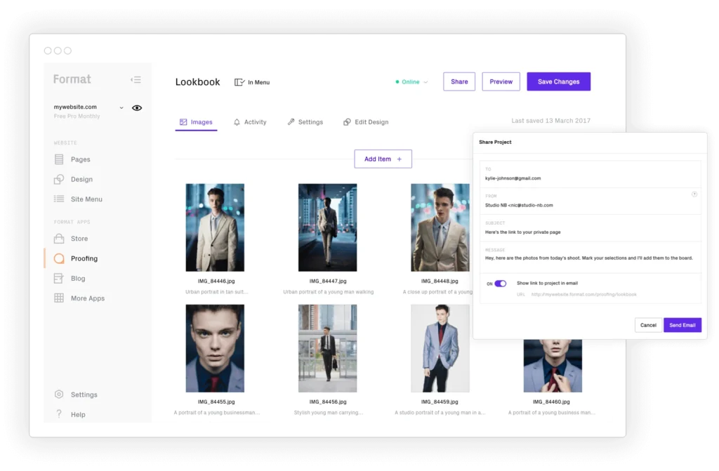 Present images to clients professionally and privately with password-protected client galleries. Customize to your needs then share directly from your site.